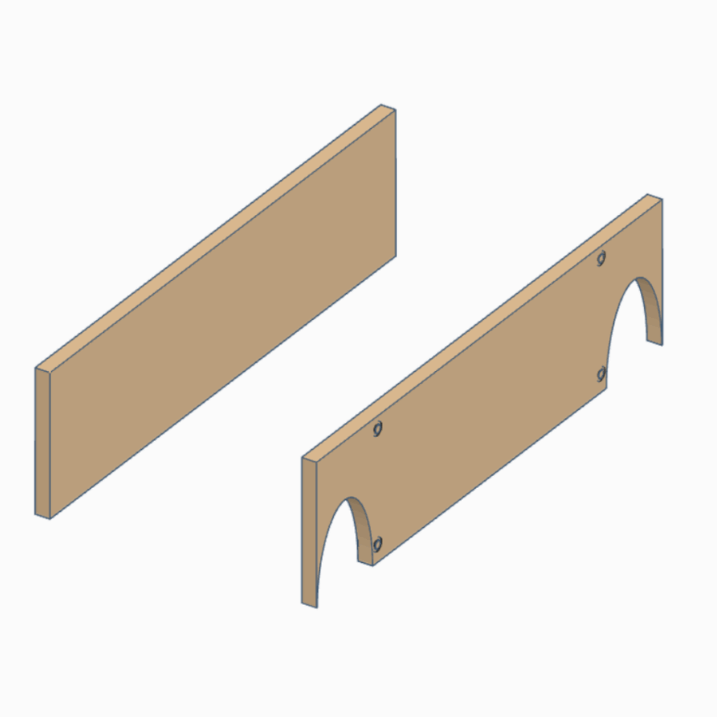 - De kleine ronde ringen zijn de plekken waar voorgeboord moet worden voor de schroeven (kan ook tijdens het monteren)
