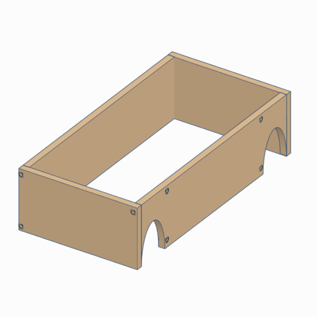 Neem de zijkanten en plaats deze op de voor- en achterkant. Bevestig met 3 schroeven aan elke zijde, waarvan er 2 schroeven in de achterkant worden geschroefd en 1 in de voorkant.