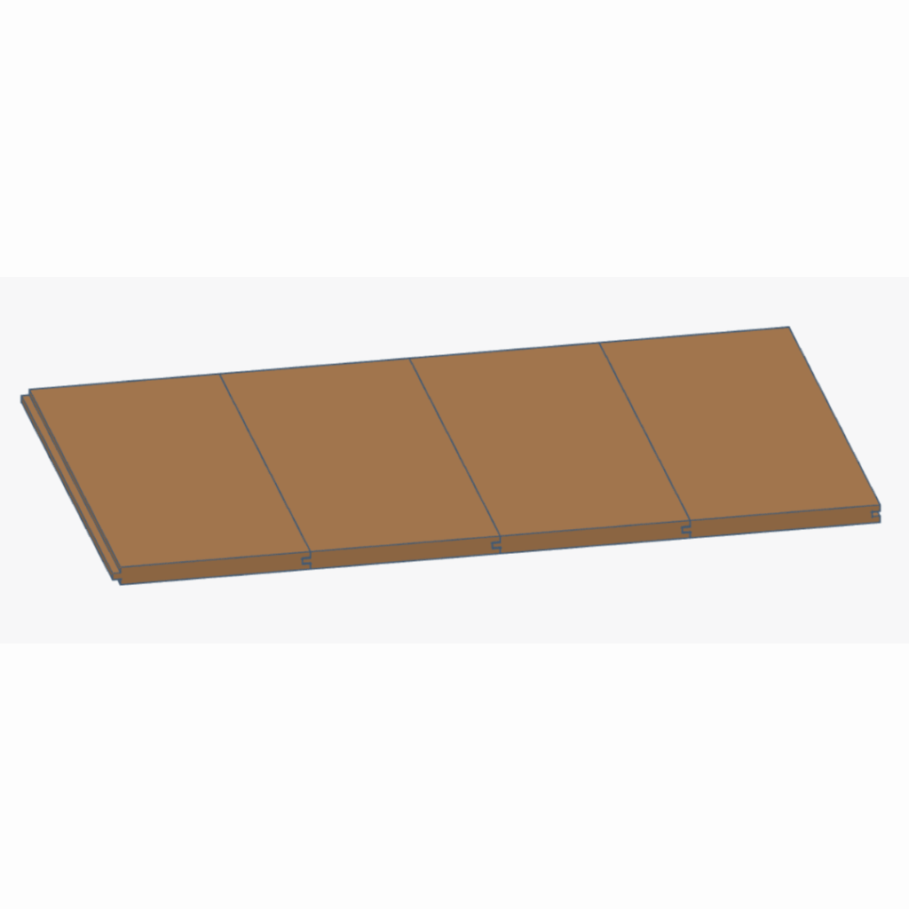 Het grootste gedeelte van het voederhuis is nu klaar. We gaan verder met de montage van het dak. Leg alle mes-en-groefplanken voor het dakje naast elkaar.