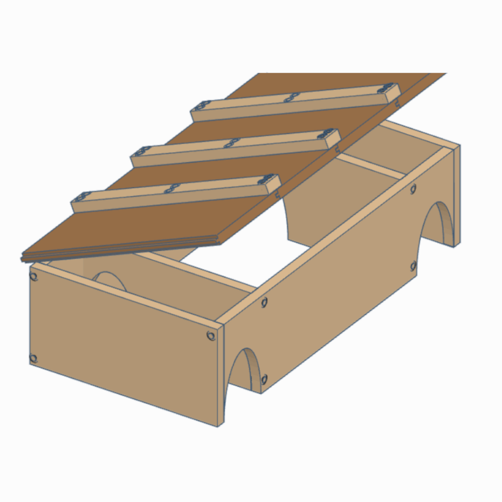 Druk alle verbindingen in elkaar (met D3 houtlijm) en check dat het dakje in ieder geval net zo breed is als het voederhuis of iets groter zodat het er overheen valt.